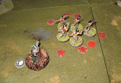 That was a very tense game, with the tribesmen [mostly] rampaging through the expedition's forces. At the conclusion, Mary had just one unit left [i.e. the doctor's young warriors] plus a single ruga ruga, whilst Ujuwa had at least 4 units and a lone scout. The Fang cannibals accounted for a lot of Mary's forces, especially the better quality groups such as the adventurers and the soldiers, leaving them easy meat for the tribesmen to finish off.